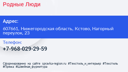 Родные Люди по адресу 607661, Нижегородская область, Кстово, Нагорный переулок, 23 в дальнейшем Организация, размещена в следующих категориях: