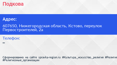Подкова по адресу 607650, Нижегородская область, Кстово, переулок Первостроителей, 2а в дальнейшем Организация, размещена в следующих категориях:
