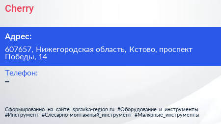 Cherry по адресу 607657, Нижегородская область, Кстово, проспект Победы, 14 в дальнейшем Организация, размещена в следующих категориях: