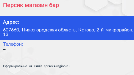 Персик, магазин-бар по адресу 607660, Нижегородская область, Кстово, 2-й микрорайон, 13 в дальнейшем Организация, размещена в следующих категориях: