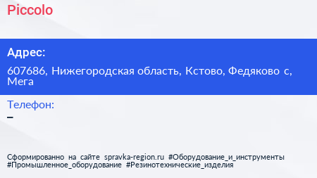 Piccolo по адресу 607686, Нижегородская область, Кстово, Федяково с, Мега в дальнейшем Организация, размещена в следующих категориях: