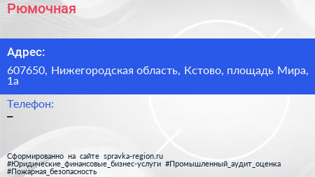 Рюмочная по адресу 607650, Нижегородская область, Кстово, площадь Мира, 1а в дальнейшем Организация, размещена в следующих категориях: