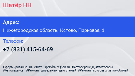 Шатёр-НН по адресу Нижегородская область, Кстово, Парковая, 1 в дальнейшем Организация, размещена в следующих категориях:
