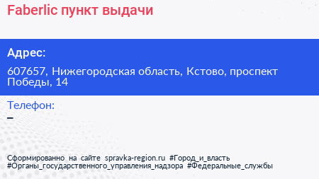 Faberlic, пункт выдачи по адресу 607657, Нижегородская область, Кстово, проспект Победы, 14 в дальнейшем Организация, размещена в следующих категориях: