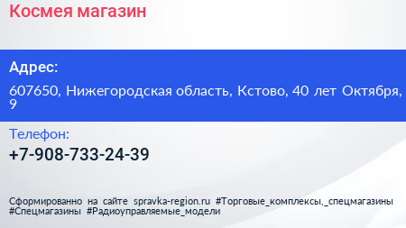 Космея, магазин по адресу 607650, Нижегородская область, Кстово, 40 лет Октября, 9 в дальнейшем Организация, размещена в следующих категориях: