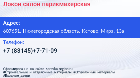 Локон, салон-парикмахерская по адресу 607651, Нижегородская область, Кстово, Мира, 13а в дальнейшем Организация, размещена в следующих категориях: