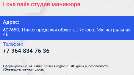 Lova nails, студия маникюра по адресу 607650, Нижегородская область, Кстово, Магистральная, 4Б в дальнейшем Организация, размещена в следующих категориях: