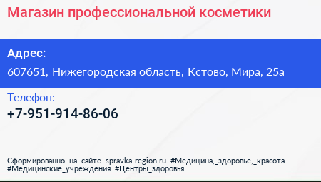 Магазин профессиональной косметики по адресу 607651, Нижегородская область, Кстово, Мира, 25а в дальнейшем Организация, размещена в следующих категориях: