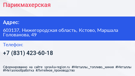 Парикмахерская по адресу 603137, Нижегородская область, Кстово, Маршала Голованова, 49 в дальнейшем Организация, размещена в следующих категориях: