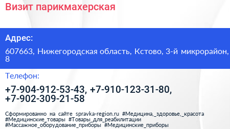 Визит, парикмахерская по адресу 607663, Нижегородская область, Кстово, 3-й микрорайон, 8 в дальнейшем Организация, размещена в следующих категориях: