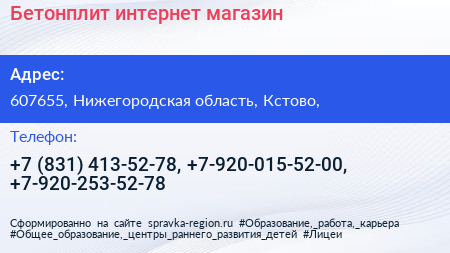Бетонплит, интернет-магазин по адресу 607655, Нижегородская область, Кстово, в дальнейшем Организация, размещена в следующих категориях: