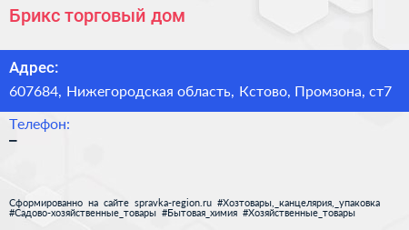 Брикс, торговый дом по адресу 607684, Нижегородская область, Кстово, Промзона, ст7 в дальнейшем Организация, размещена в следующих категориях: