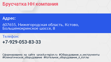 Брусчатка-НН, компания по адресу 607655, Нижегородская область, Кстово, Большемокринское шоссе, 8 в дальнейшем Организация, размещена в следующих категориях: