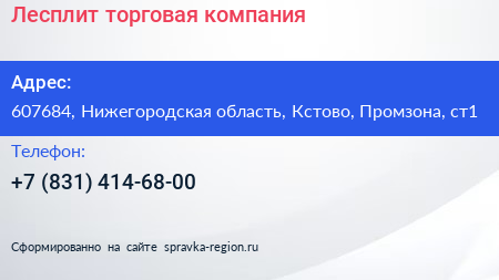 Лесплит, торговая компания по адресу 607684, Нижегородская область, Кстово, Промзона, ст1 в дальнейшем Организация, размещена в следующих категориях: