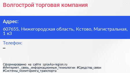 Волгострой, торговая компания по адресу 607655, Нижегородская область, Кстово, Магистральная, 1 к3 в дальнейшем Организация, размещена в следующих категориях: