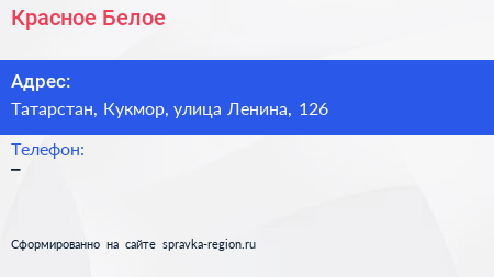 Красное & Белое по адресу Татарстан, Кукмор, улица Ленина, 126 в дальнейшем Организация, размещена в следующих категориях:
