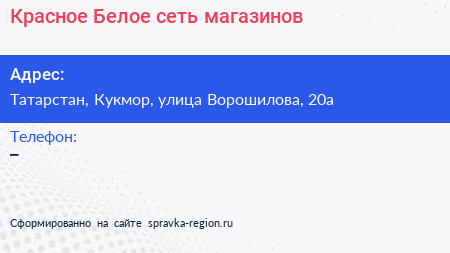 Красное & Белое, сеть магазинов по адресу Татарстан, Кукмор, улица Ворошилова, 20а в дальнейшем Организация, размещена в следующих категориях: