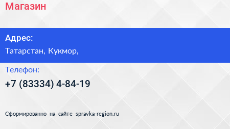 Магазин по адресу Татарстан, Кукмор, в дальнейшем Организация, размещена в следующих категориях: