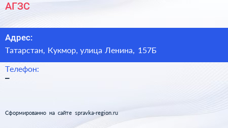АГЗС по адресу Татарстан, Кукмор, улица Ленина, 157Б в дальнейшем Организация, размещена в следующих категориях: