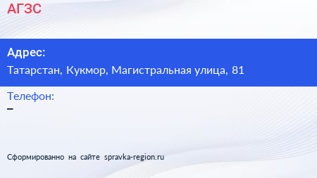 АГЗС по адресу Татарстан, Кукмор, Магистральная улица, 81 в дальнейшем Организация, размещена в следующих категориях: