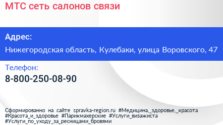 МТС, сеть салонов связи по адресу Нижегородская область, Кулебаки, улица Воровского, 47 в дальнейшем Организация, размещена в следующих категориях: