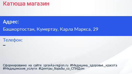 Катюша, магазин по адресу Башкортостан, Кумертау, Карла Маркса, 29 в дальнейшем Организация, размещена в следующих категориях: