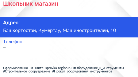 Школьник, магазин по адресу Башкортостан, Кумертау, Машиностроителей, 10 в дальнейшем Организация, размещена в следующих категориях: