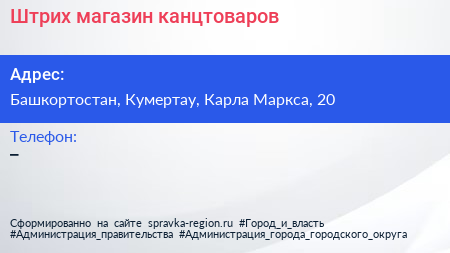 Штрих, магазин канцтоваров по адресу Башкортостан, Кумертау, Карла Маркса, 20 в дальнейшем Организация, размещена в следующих категориях: