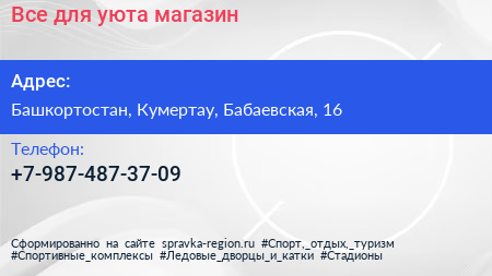 Все для уюта, магазин по адресу Башкортостан, Кумертау, Бабаевская, 16 в дальнейшем Организация, размещена в следующих категориях: