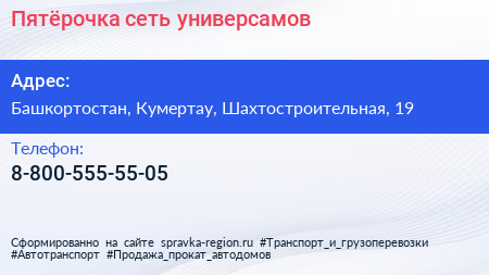 Пятёрочка, сеть универсамов по адресу Башкортостан, Кумертау, Шахтостроительная, 19 в дальнейшем Организация, размещена в следующих категориях: