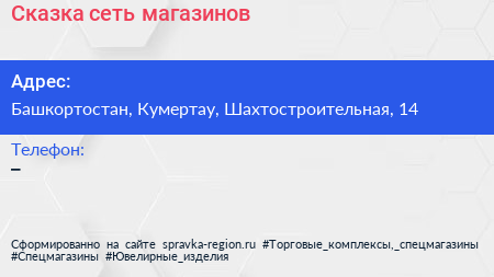 Сказка, сеть магазинов по адресу Башкортостан, Кумертау, Шахтостроительная, 14 в дальнейшем Организация, размещена в следующих категориях: