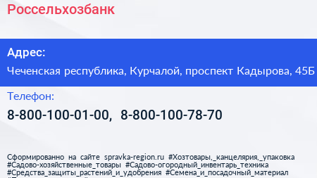 Россельхозбанк по адресу Чеченская республика, Курчалой, проспект Кадырова, 45Б в дальнейшем Организация, размещена в следующих категориях: