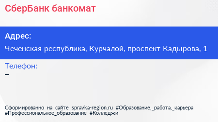 СберБанк, банкомат по адресу Чеченская республика, Курчалой, проспект Кадырова, 1 в дальнейшем Организация, размещена в следующих категориях: