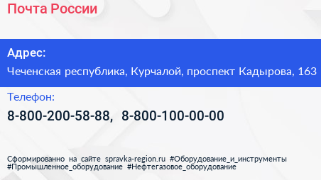 Почта России по адресу Чеченская республика, Курчалой, проспект Кадырова, 163 в дальнейшем Организация, размещена в следующих категориях:
