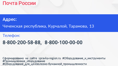 Почта России по адресу Чеченская республика, Курчалой, Тарамова, 13 в дальнейшем Организация, размещена в следующих категориях: