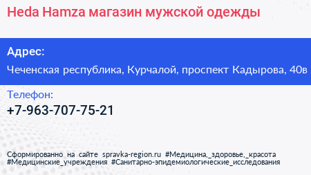 Heda Hamza, магазин мужской одежды по адресу Чеченская республика, Курчалой, проспект Кадырова, 40в в дальнейшем Организация, размещена в следующих категориях: