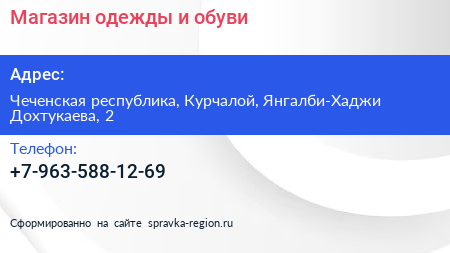 Магазин одежды и обуви по адресу Чеченская республика, Курчалой, Янгалби-Хаджи Дохтукаева, 2 в дальнейшем Организация, размещена в следующих категориях: