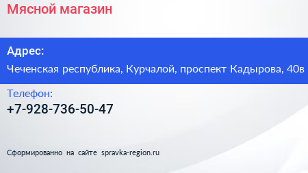 Мясной магазин по адресу Чеченская республика, Курчалой, проспект Кадырова, 40в в дальнейшем Организация, размещена в следующих категориях: