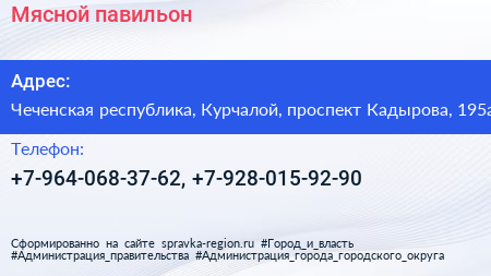Мясной павильон по адресу Чеченская республика, Курчалой, проспект Кадырова, 195а в дальнейшем Организация, размещена в следующих категориях: