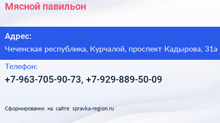 Мясной павильон по адресу Чеченская республика, Курчалой, проспект Кадырова, 31а в дальнейшем Организация, размещена в следующих категориях:
