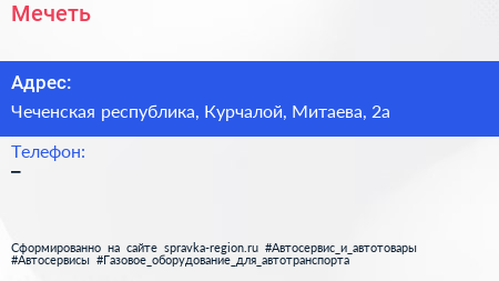 Мечеть по адресу Чеченская республика, Курчалой, Митаева, 2а в дальнейшем Организация, размещена в следующих категориях:
