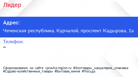 Лидер по адресу Чеченская республика, Курчалой, проспект Кадырова, 1а в дальнейшем Организация, размещена в следующих категориях: