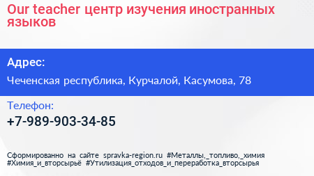 Our teacher, центр изучения иностранных языков по адресу Чеченская республика, Курчалой, Касумова, 78 в дальнейшем Организация, размещена в следующих категориях: