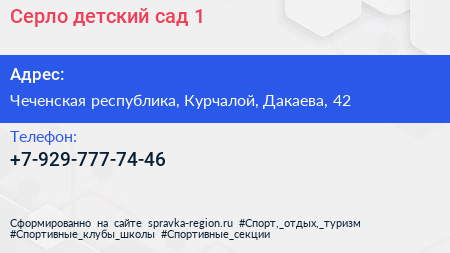 Серло, детский сад №1 по адресу Чеченская республика, Курчалой, Дакаева, 42 в дальнейшем Организация, размещена в следующих категориях: