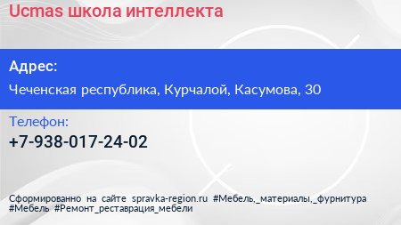 Ucmas, школа интеллекта по адресу Чеченская республика, Курчалой, Касумова, 30 в дальнейшем Организация, размещена в следующих категориях: