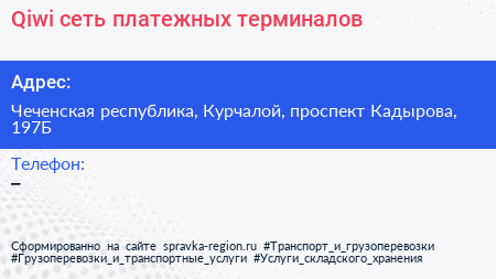 Qiwi, сеть платежных терминалов по адресу Чеченская республика, Курчалой, проспект Кадырова, 197Б в дальнейшем Организация, размещена в следующих категориях: