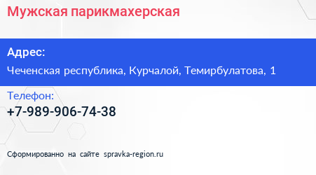 Мужская парикмахерская по адресу Чеченская республика, Курчалой, Темирбулатова, 1 в дальнейшем Организация, размещена в следующих категориях: