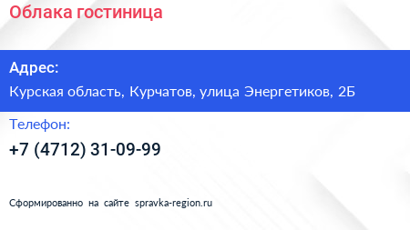 Облака, гостиница по адресу Курская область, Курчатов, улица Энергетиков, 2Б в дальнейшем Организация, размещена в следующих категориях: