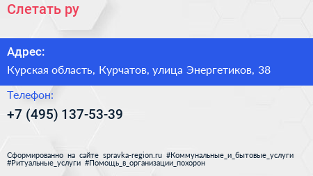 Слетать.ру по адресу Курская область, Курчатов, улица Энергетиков, 38 в дальнейшем Организация, размещена в следующих категориях: