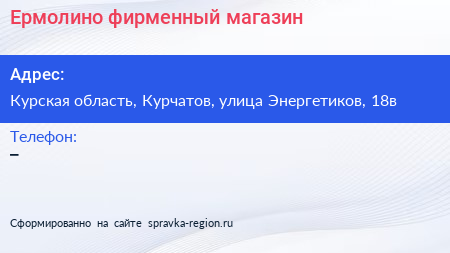 Ермолино, фирменный магазин по адресу Курская область, Курчатов, улица Энергетиков, 18в в дальнейшем Организация, размещена в следующих категориях: